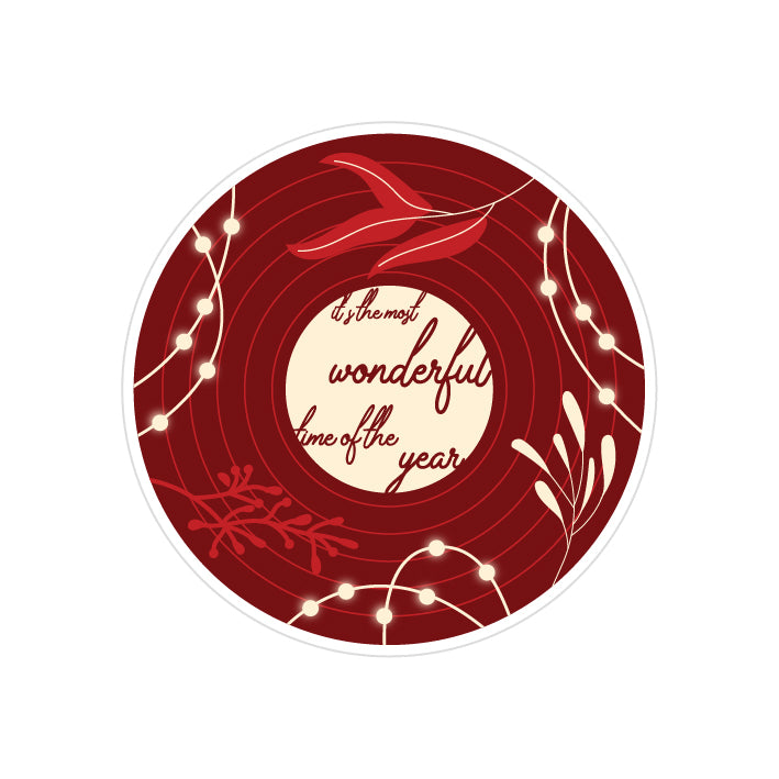 A festive Record sticker celebrating the magic of the holiday season, decorated with winter branches and warm seasonal details.